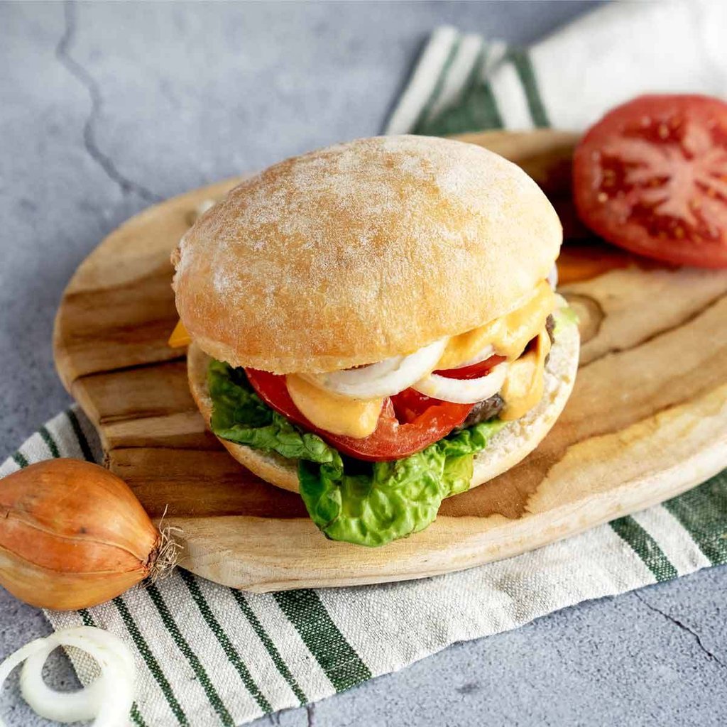Goûtez à notre Burger Gourmet rustique. Ce délicieux petit pain blanc à l’aspect artisanal est très polyvalent : en plus des recettes classiques, il peut également se transformer en un tour de main en un savoureux burger vegan.