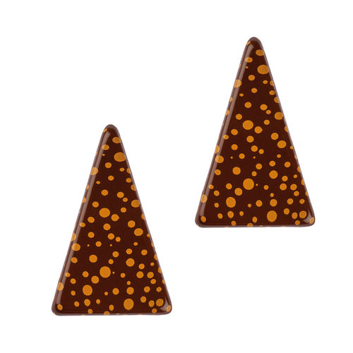 Topper triangolare di cioccolato bianco con ghirigori marroni. Ideali per decorare ciambelle, torte, dessert, gelati e molto altro.