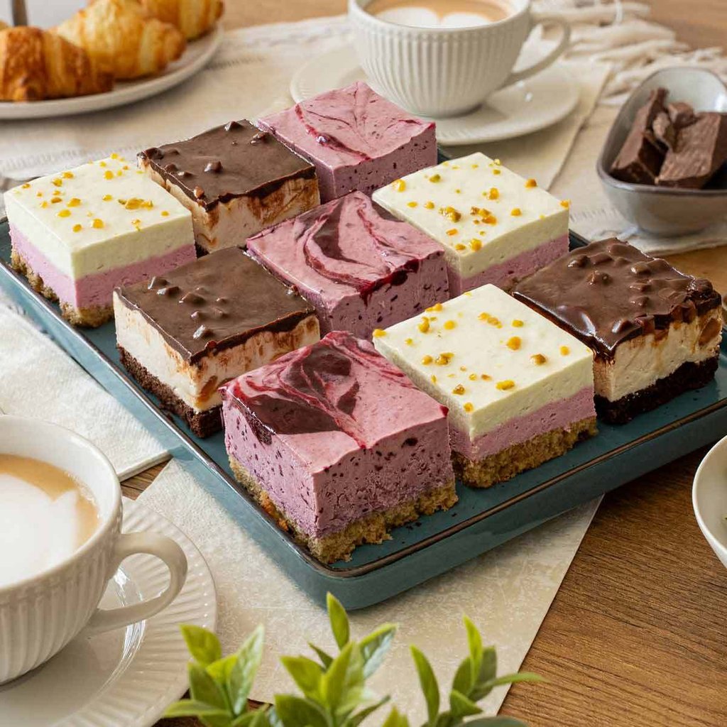 tranci alla cheesecake e ribes nero: l 29,0 x b 19,5 x h 4,5 cm