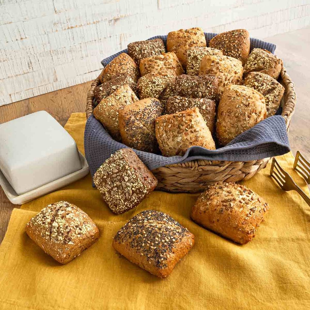 Überraschen Sie Ihre Kunden doch einmal mit ganz besonderen Brötli: Hergestellt nach einer innovativen Rezeptur eignen sich diese auch für eine bewusste Ernährung. Korn trifft auf Genuss, denn mit dieser Mischung treffen Sie bei Ihren Gästen und Kunden ganz bestimmt ins Schwarze. Sparen Sie Lagerplatz und erweitern Sie jetzt Ihr Sortiment mit dieser praktischen Mischkiste.