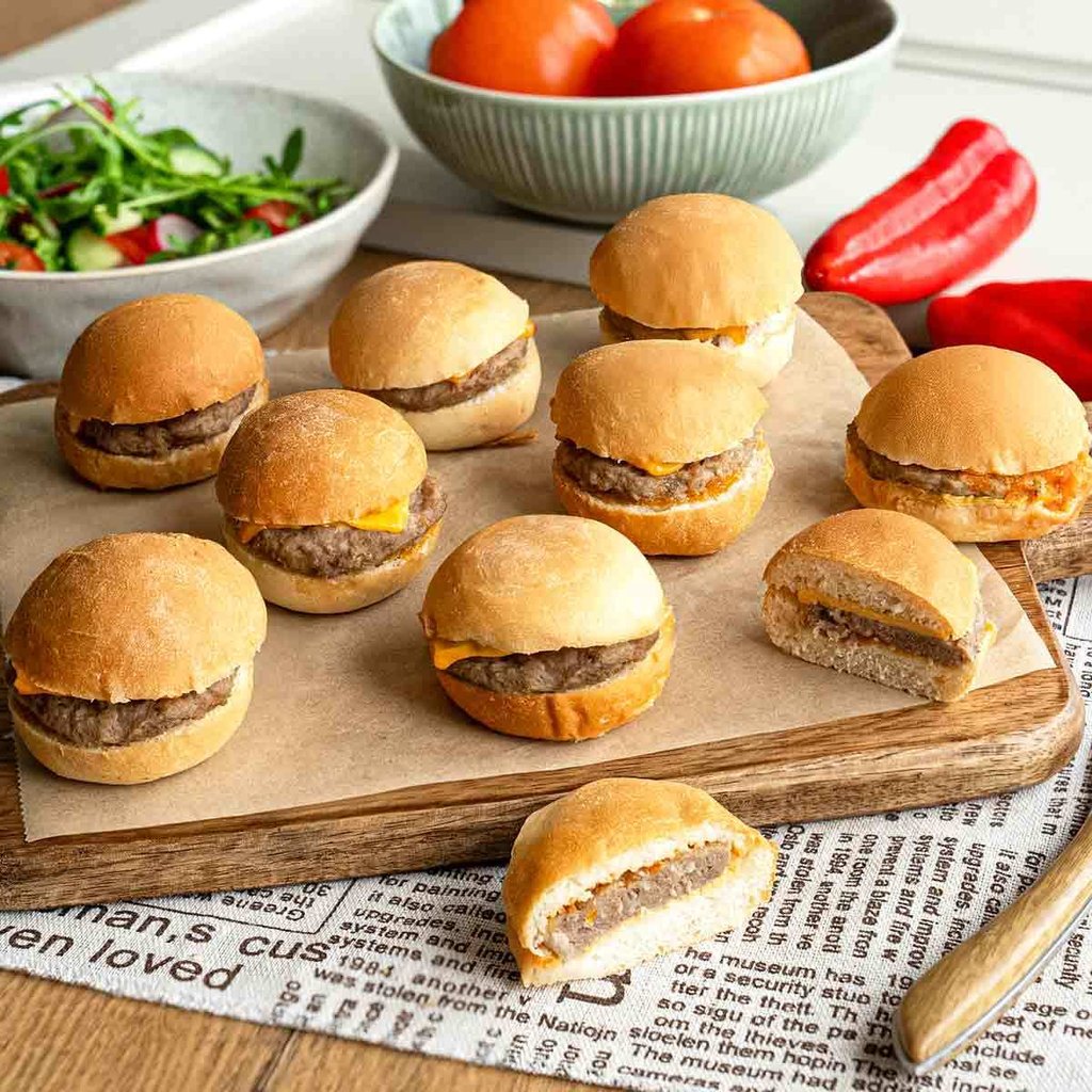 Mit dieser Mischkiste erhalten Sie lecker, saftige Mini Burger in zwei beliebten Geschmacksrichtungen. Reichen Sie die kleinen Burger als Snack oder praktisches Fingerfood. Sie lassen sich einfach sowie portionsgenau entnehmen und sind nach kurzer Zeit bereit zum Servieren. Die Höhe der einzelnen Burger kann aufgrund des Belages variieren!